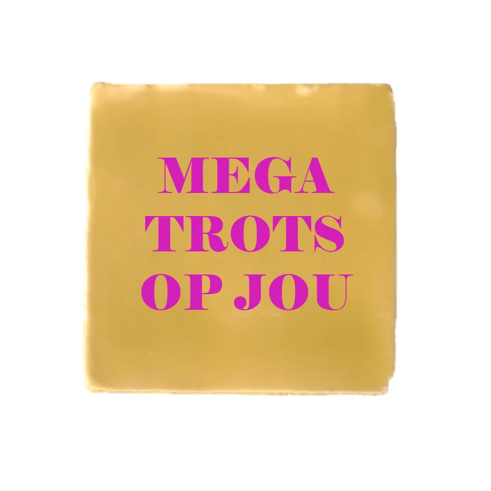 Gekleurd tegeltje - Mega trots op jou - Geel