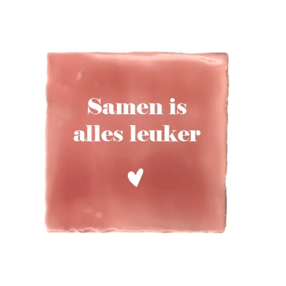 Gekleurd tegeltje - Samen is alles leuker - Roze