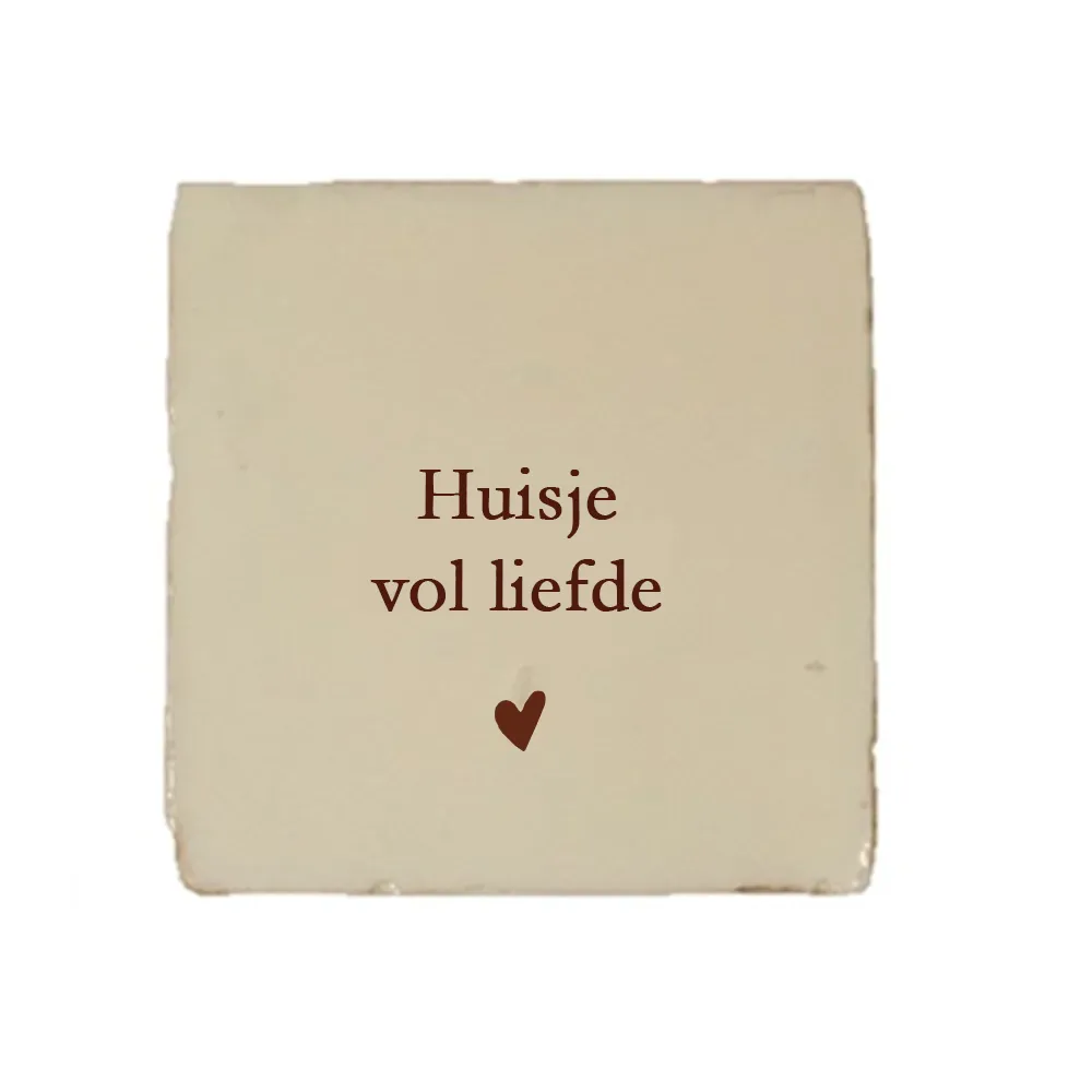 Gekleurd tegeltje - Huisje vol liefde - Beige