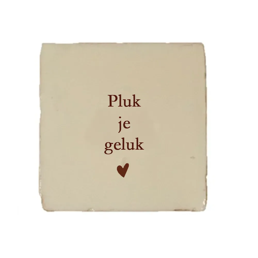 Gekleurd tegeltje - Pluk je geluk - Beige