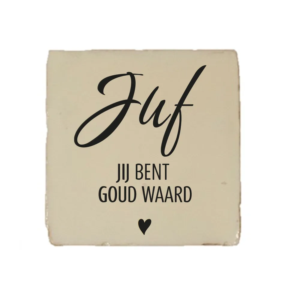 Gekleurd tegeltje - Juf jij bent goud waard - beige