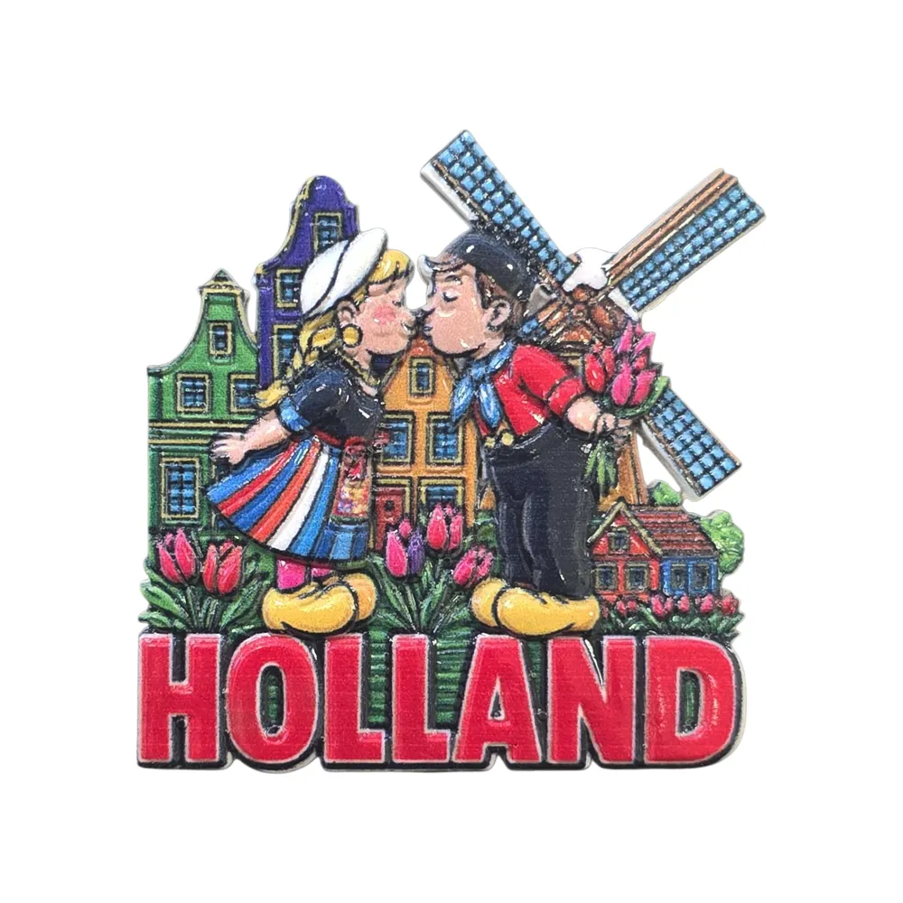 Print poly stone magneet Holland kussend paar