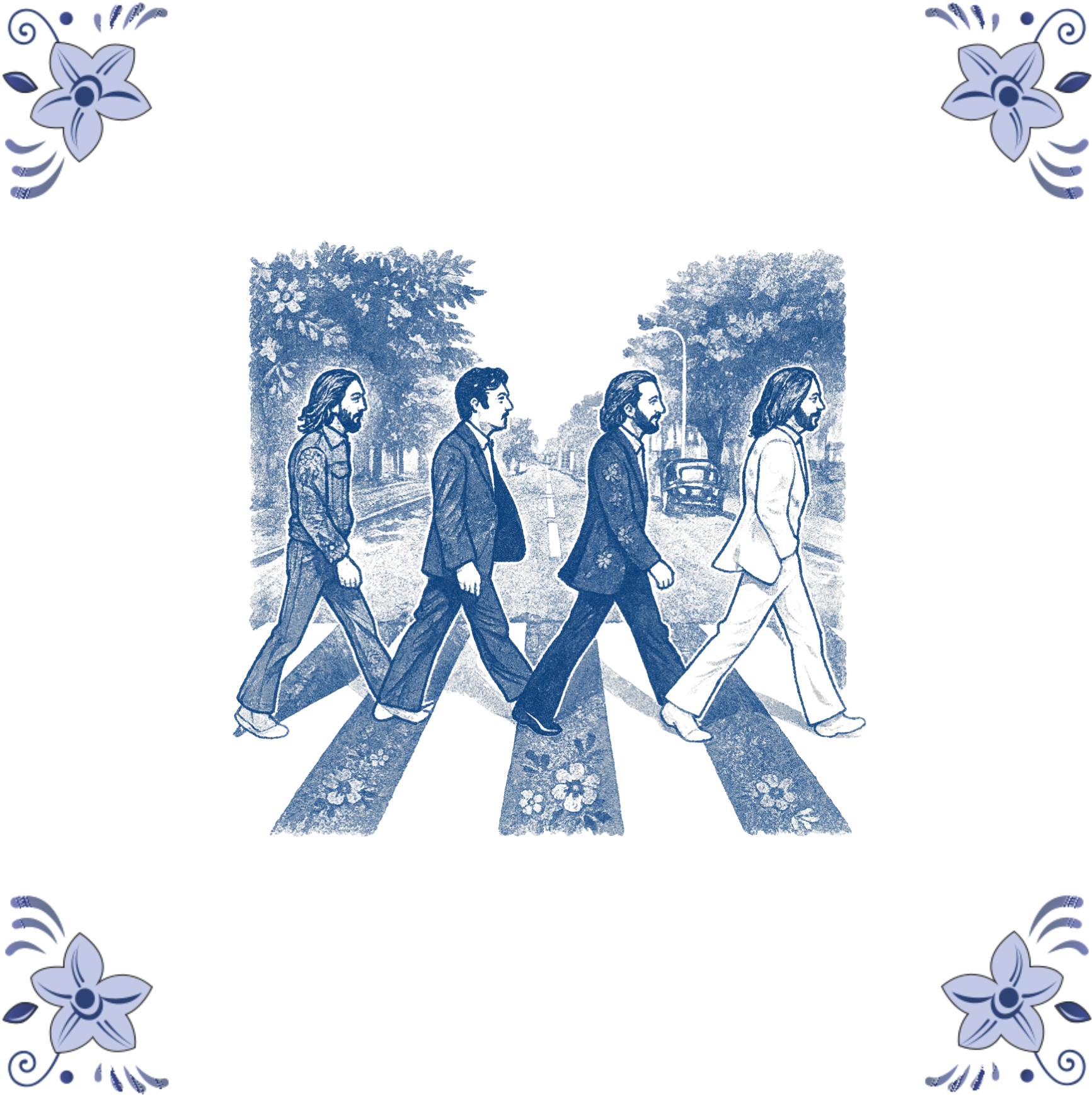 Delfts blauw tegeltje 13x13cm Beatles Abbey Road