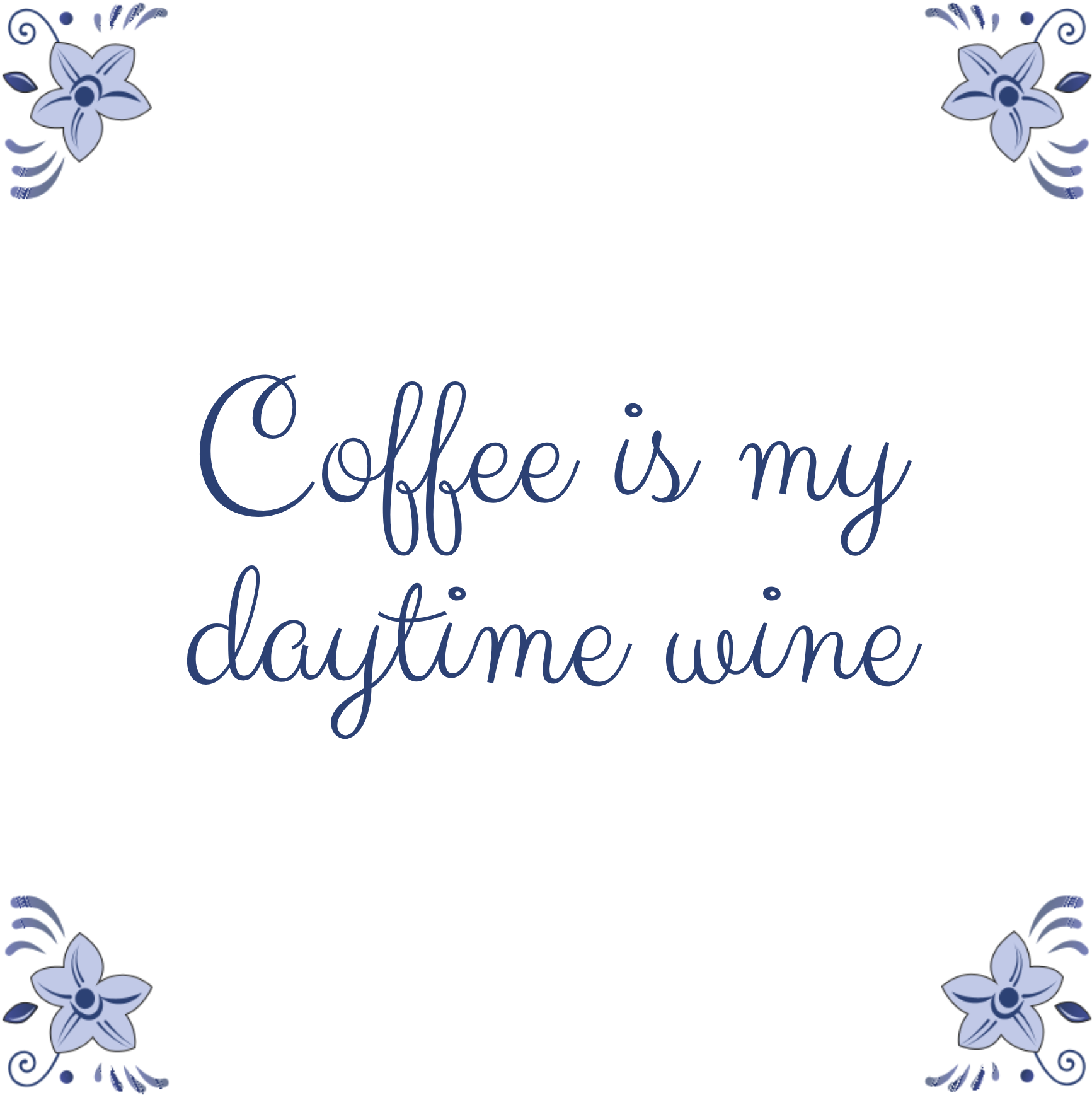 / Delfts blauw tegeltje 13x13cm Coffee is my daytime wine