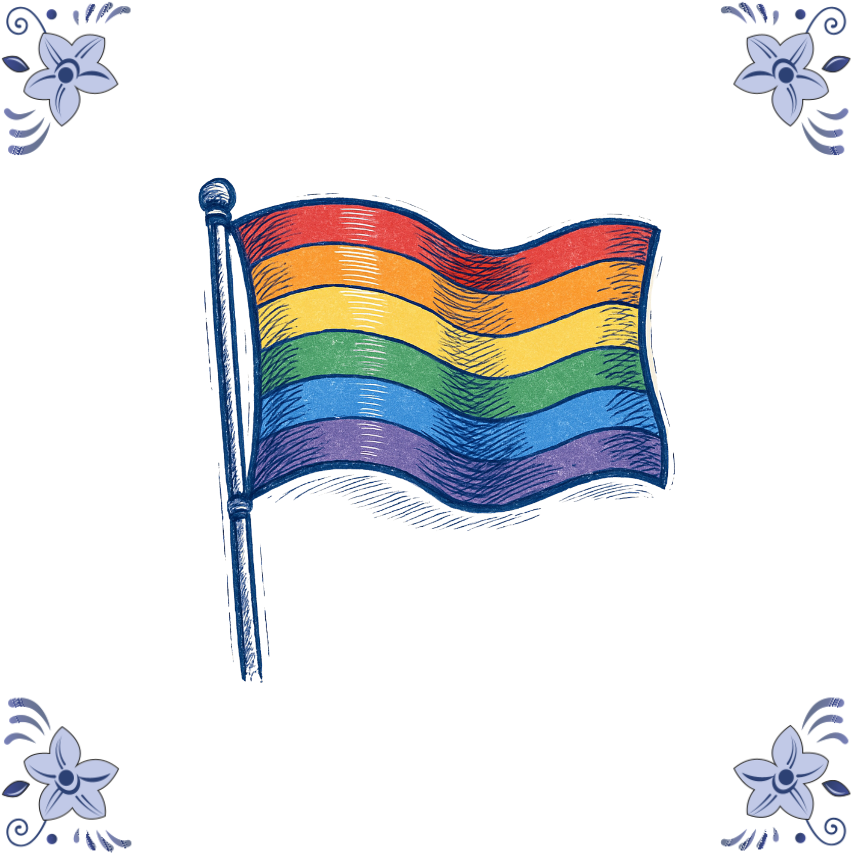 / Delfts blauw tegeltje 13x13cm LHBTQ+ vlag