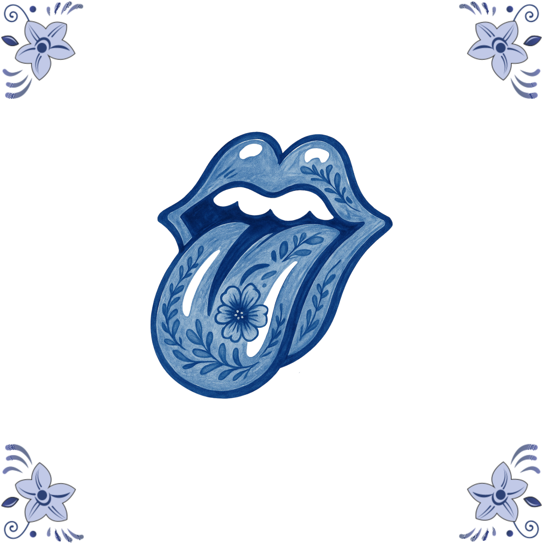 / Delfts blauw tegeltje 13x13cm Rolling Stones