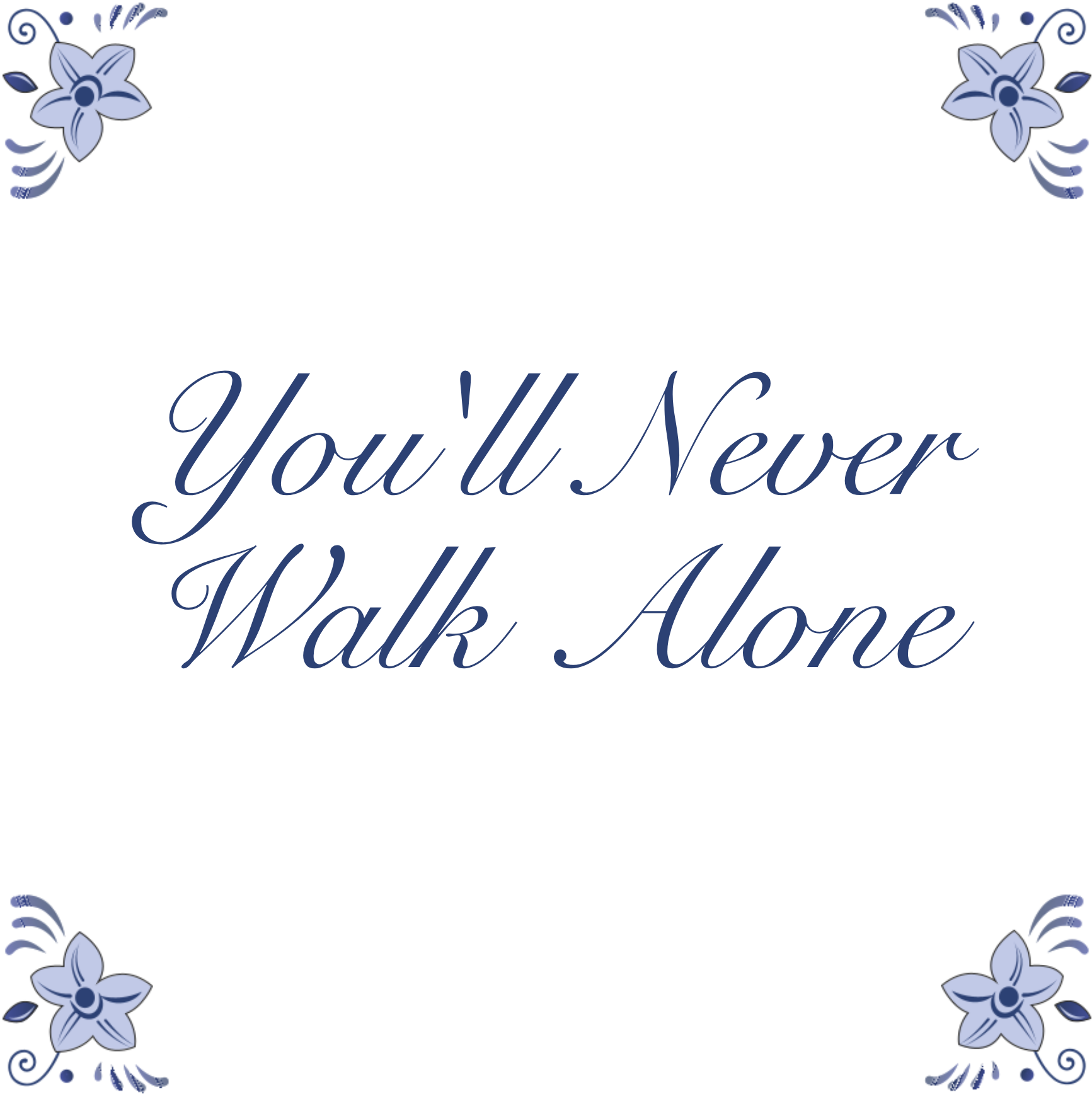 Delfts blauw tegeltje 13x13cm You'll Never walk alone