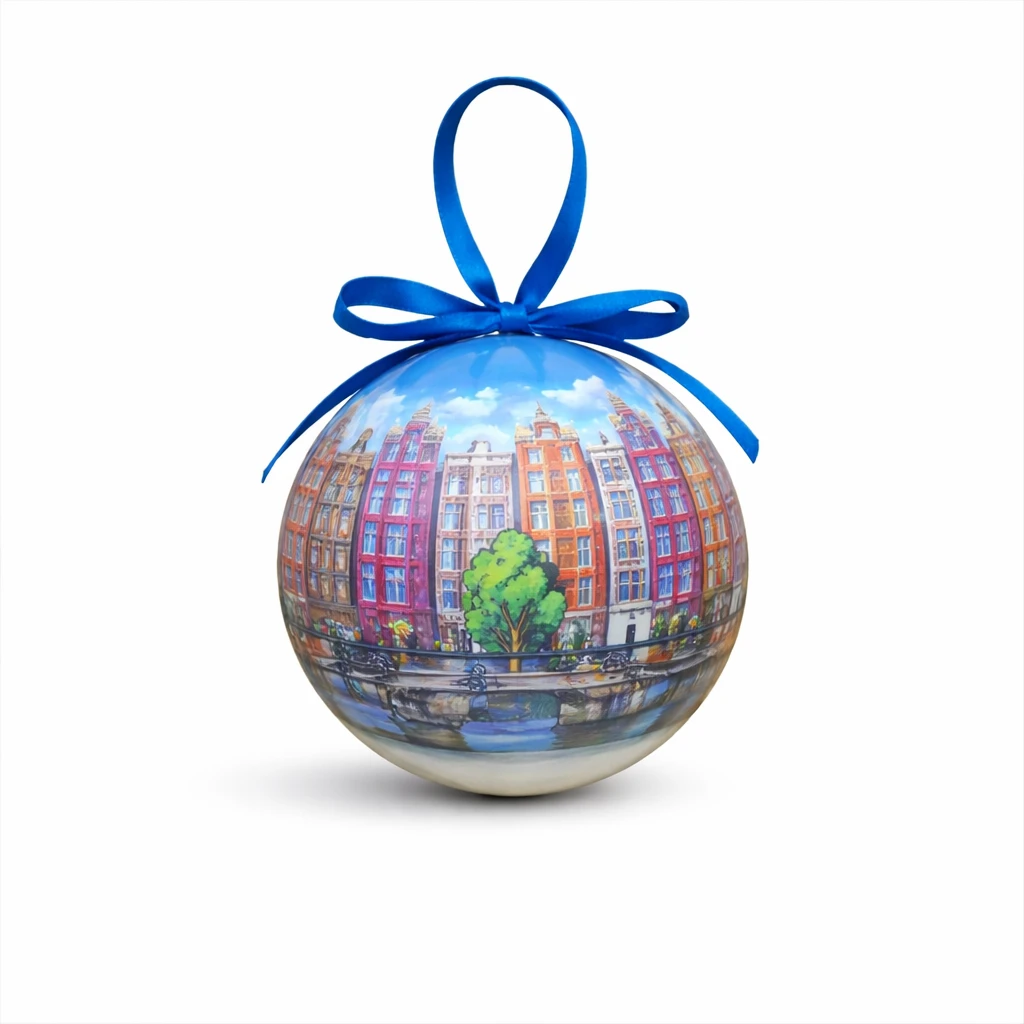 Kerstbal Amsterdam fiets grachtenpanden